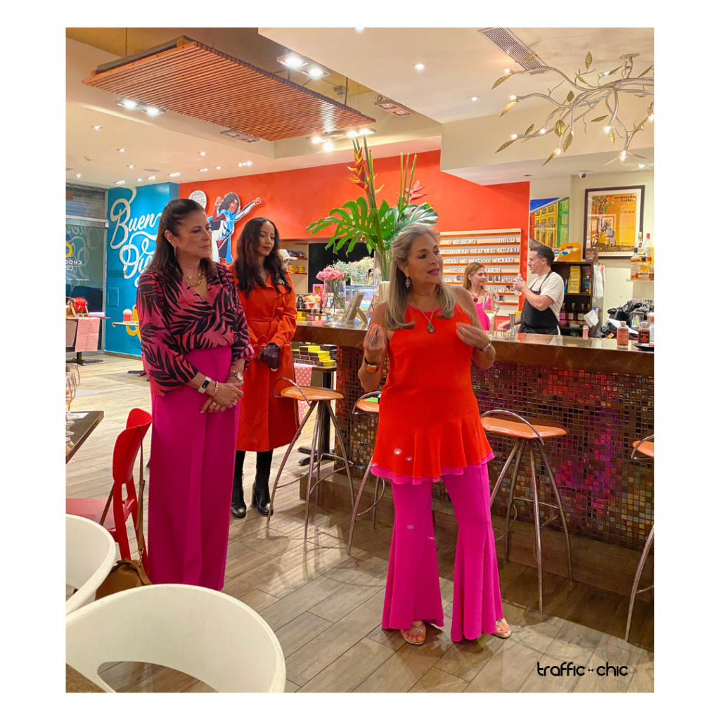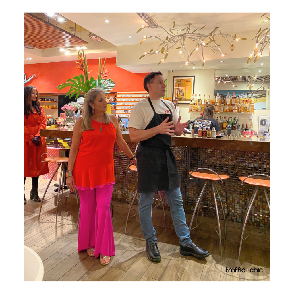 La propuesta gastronómica de Chocobar Cortés fue protagonista durante la noche, con una variedad de bocaditos dulces y salados que complementaron la experiencia sensorial. Vestidas en tonos rojos, rosas y marrones evocando el chocolate, las asistentes participaron además en una actividad creativa en la que personalizaron sus propias cajas de bombones con el acompañamiento de Monse Rivera, de la papelería puertorriqueña Just B. Cuz, reconocida por sus diseños artesanales.