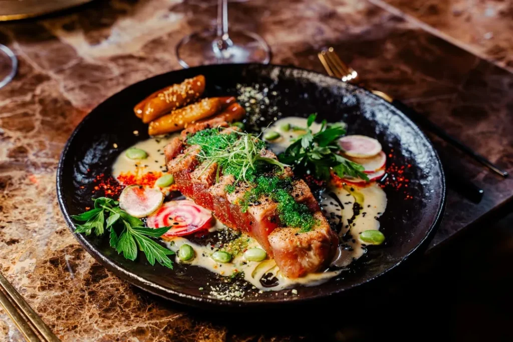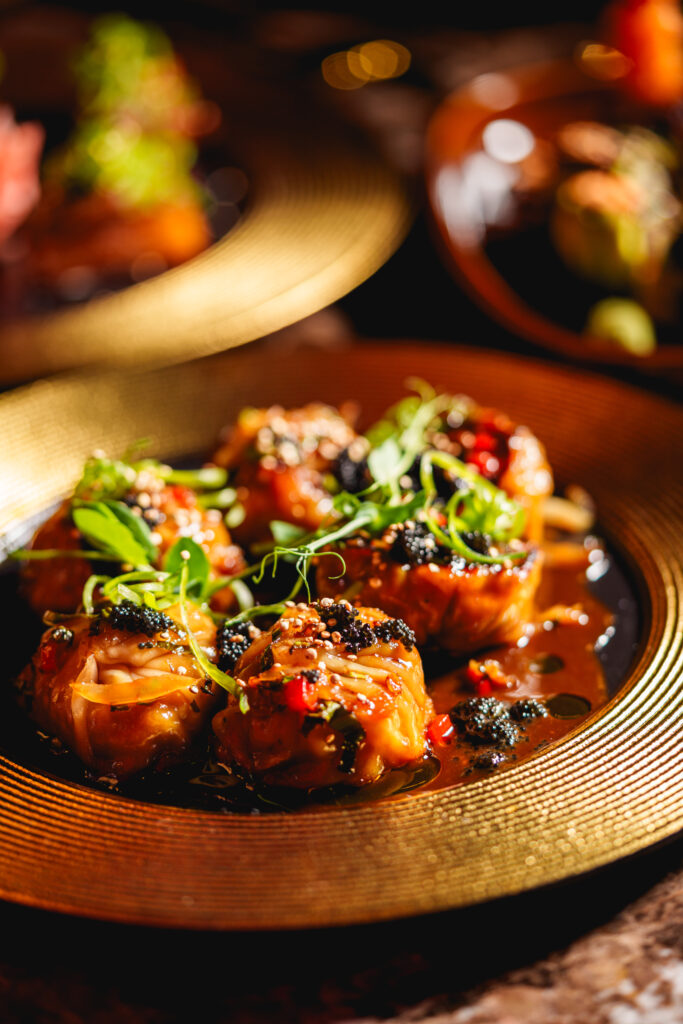 Entre las incorporaciones más comentadas figuraron el Crispy Rice Montadito, una versión contemporánea del clásico arroz crujiente transformado en un bocado delicado, y el Signature Peking Style Duck, una interpretación personal de una de las preparaciones más icónicas de la cocina asiática, destacada por su técnica refinada y su presentación elegante. A estas propuestas se sumaron platos ya celebrados por el público, como el Duck Fried Rice, el Nigiri de Pata Negra con caviar, los Pork & Amarillo Dumplings y el Churrasco con Ho Fun Noodles, consolidando una oferta amplia y sofisticada.