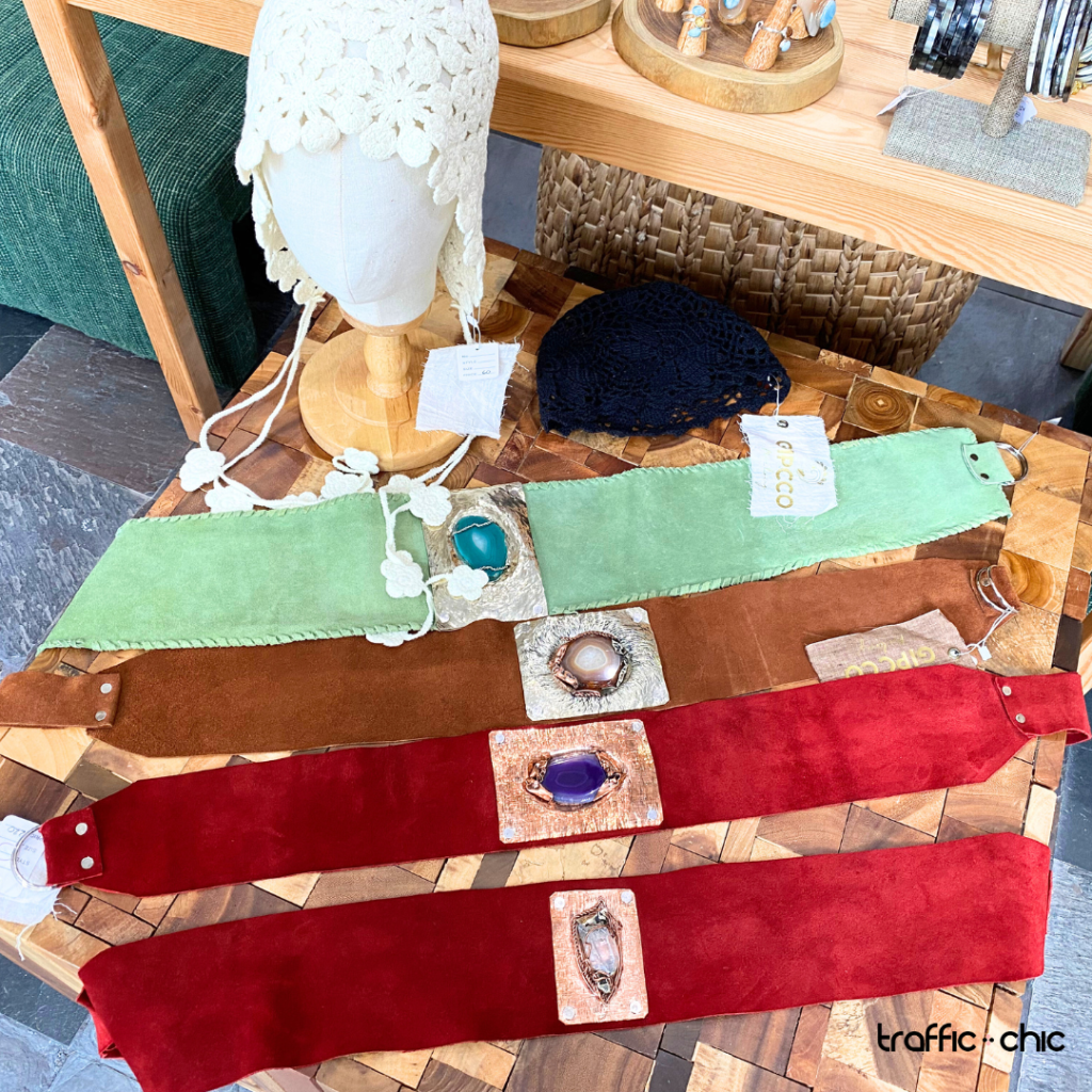 Los accesorios que acompañan la colección, bolsos y cinturones confeccionados en cuero real y adornados con piedras preciosas, son extensión directa de su visión. Tienen carácter, presencia y una artesanía honesta que abraza la imperfección como parte del encanto. Son piezas que honran la tradición, pero se sienten modernas; que narran pasado, pero caminan con fuerza en el presente. Están hechas para mujeres que entienden que un buen accesorio no complementa, sino que en si mismo es una expresión.