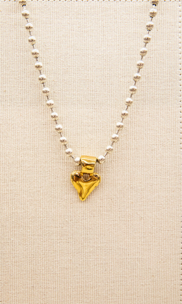 Pálpito reinterpreta iconos clásicos de la marca con formas orgánicas y una mezcla de plata y oro que la distingue. Collares, anillos, pulseras y pendientes con forma de corazón integran una línea versátil y cargada de simbolismo.